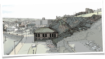 The views are mounted in the museums upper observation room, alongside a telescope to view the town, and with boards naming some of the features which can be seen in the drawings.